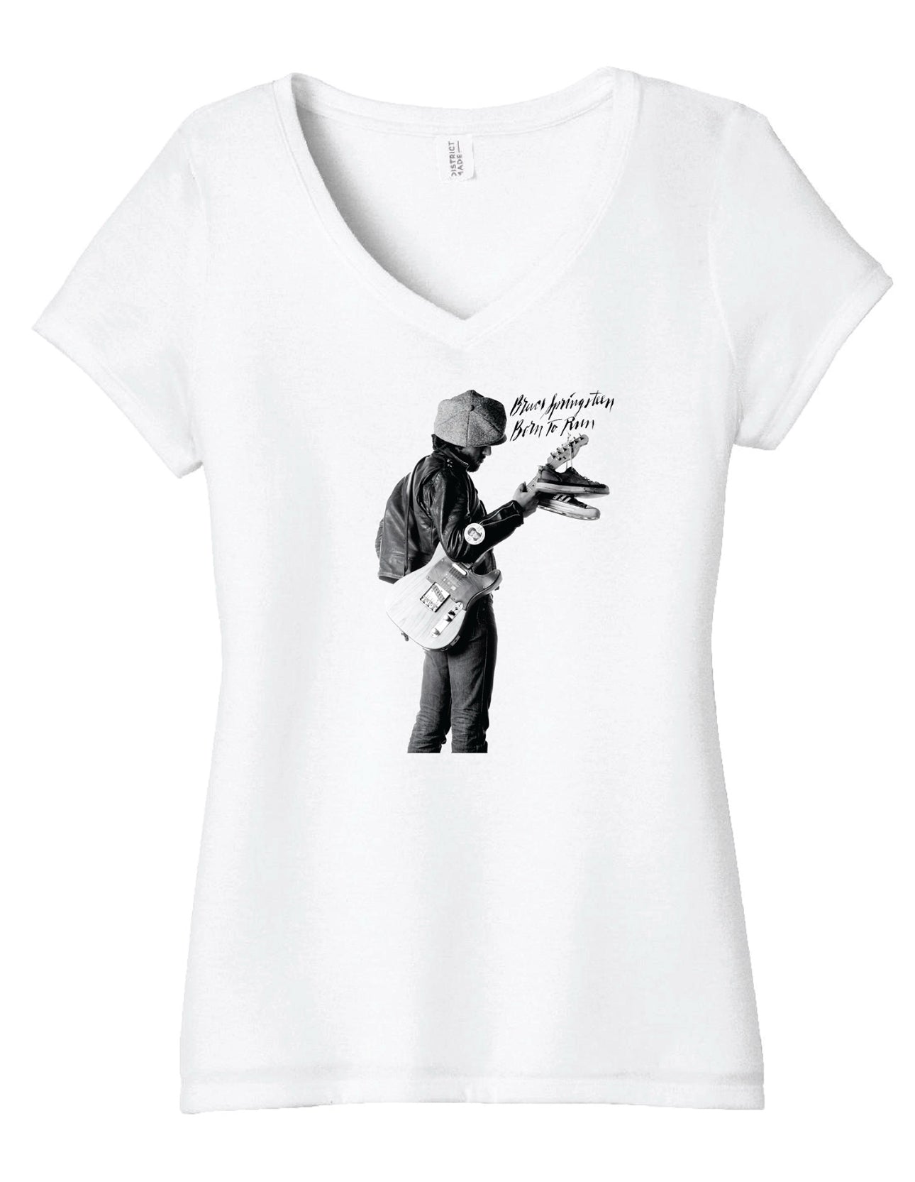Ladies "Born to Run" Limited Edition White T-Shirt Featuring Bruce Springsteen